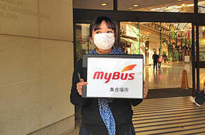 グロスターロードアーケード前で係員がボードを持ってお待ちしております。