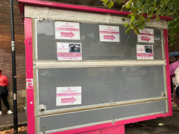 ピンク色のスタンド、この横に受付キオスクがあります