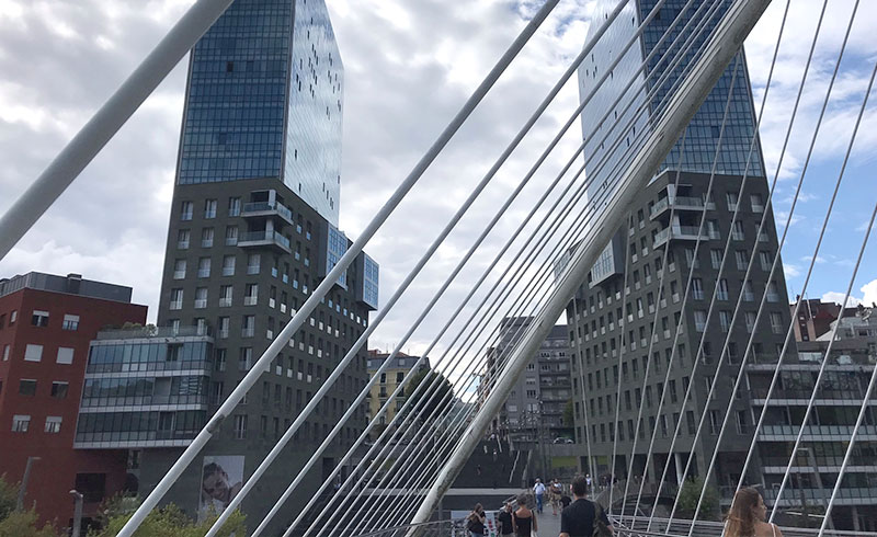 | 11:30 / 17:30 | 綺麗に整備された未来都市のようなビルバオ新市街を散策 ◎磯崎ゲート ◎スビスリ橋 ◎グッゲンハイム美術館 ※外観のみ |