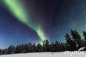 | 20:00 | バスでサーリセルカ市内から観測地点へ移動(約1時間) 光害の少ない郊外の観測スポットへバスで移動します。日本語係員が当日の気象状況をふまえて最適な観測ポイントをご案内します。(約1時間) |