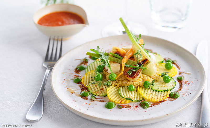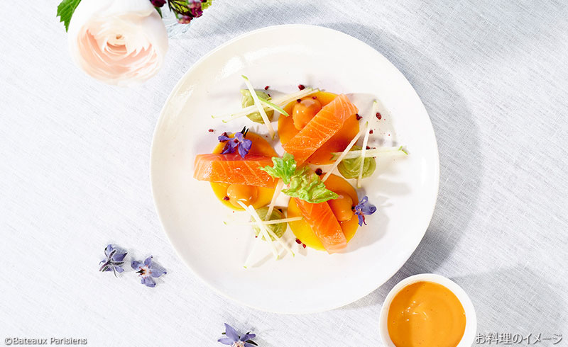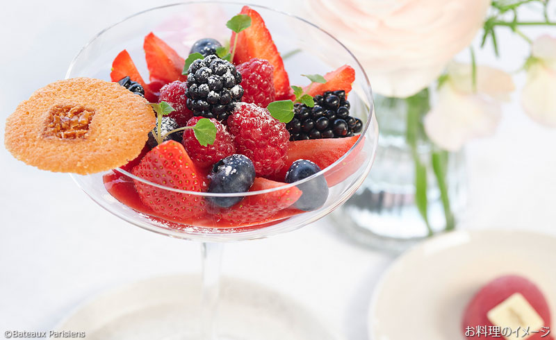 | 20:00 | 📍船発着所到着 遊覧船に乗船開始 ✨~セーヌ川を遊覧しながら船上にて夕食~✨お食事の一例 ・南西地方の鴨のフォアグラ、アプリコットチャツネ、パリ風ブリオッシュ ・牛フィレ肉、ベビーポテト、タラゴンソース ・ラズベリーのチーズケーキ・食前酒 ・ワイン ・ミネラルウォーター ・コーヒー ( 2025年10月現在) ※アルコールをお召し上がりいただけないお客様は、ソフトドリンクをご提供いたします。 |