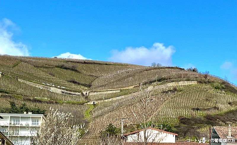 E.Guigal一家の所有するドメーヌの急斜面に植えられた葡萄の並ぶ畑の風景も圧巻です。