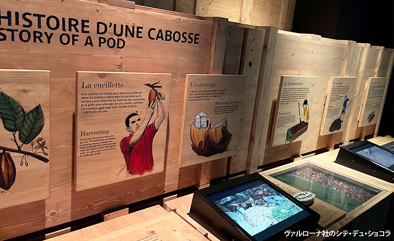 高級ワイン5種のテイスティングや葡萄畑の散策の後はヴァルローナ社のシテ・デュ・ショコラでチョコレートを試食しながらカカオからチョコレートが作られる工程を見学します。