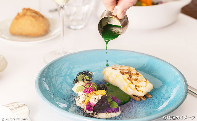 🍴前菜+メイン+デザート 🔸パテのパイ包み、野菜のピクルス添え 🔸新鮮な魚、パースニップの煮込み、シャンパンソース 🔸フランボワーズ、ブルターニュ風サブレ、バジル風味の軽いクリームとハーブのシャーベット 🍷ドリンク ・ワイングラス1杯 ・ミネラルウォーター ・コーヒーまたは紅茶 (*2026年4月現在の例) |