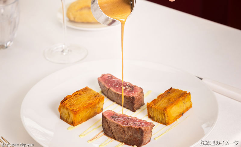 ランチは12:00〜14:00、ディナーは19:00〜22:00。お客様ご自身でレストランにお越しいただき、現地で解散となります。エッフェル塔やセーヌ川のすぐそばにあり、観光の合間や特別な夜の食事にもぴったりです。🍴メニューの一例