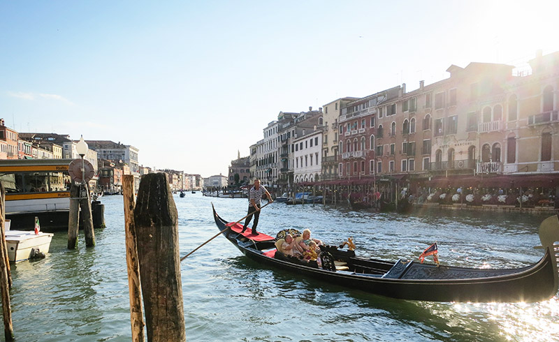 一度は乗ってみたい憧れのゴンドラ遊覧付き。運河をゆったりと進むゴンドラに揺られて、ベネチアの美しい風景をしっかり満喫