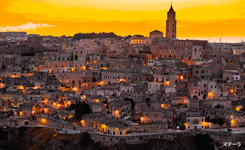 | 午後 | マテーラ住居群観光(徒歩にて/約2時間) 可愛らしいサッシと呼ばれる迷路のような町の洞窟住居群を観光しサッシ内部へもご案内します。 ≫≫≫アルベロベッロへ ▼所要時間:約2時間/75km |