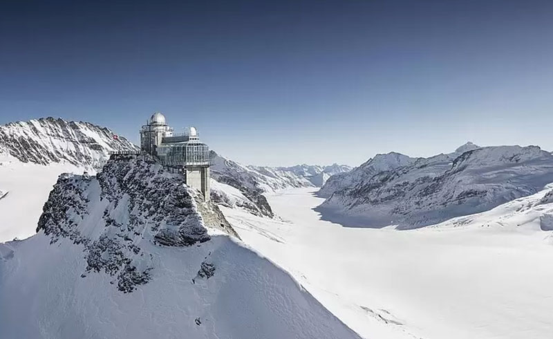 ユングフラウヨッホはアルプス最大の氷河「アレッチ氷河」を望む特別な場所。標高3,571mのスフィンクス展望台から広がる白銀の世界は圧巻です。