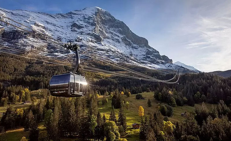 2020年開業のアイガー・エクスプレスで約15分の空中移動。従来ルートより短時間でアクセス可能。