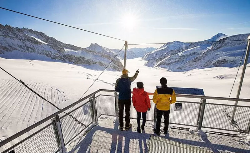 世界遺産アレッチ氷河の絶景、スフィンクス展望台、氷の宮殿(アイスパレス)、雪上散策エリアなど、アルプスの大自然を存分に体感できます。