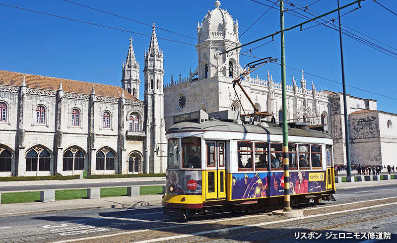 | 09:00 | リスボン市内観光(約3時間30分) ロシオ広場からフィゲイラ広場付近の旧市街散策、ベレン地区では、ベレンの塔、発見のモニュメント(下車)、ジェロニモス修道院(教会部分)(入場)ご案内します。 ロシオ広場周辺で解散後、自由行動(約2時間/昼食は各自) |