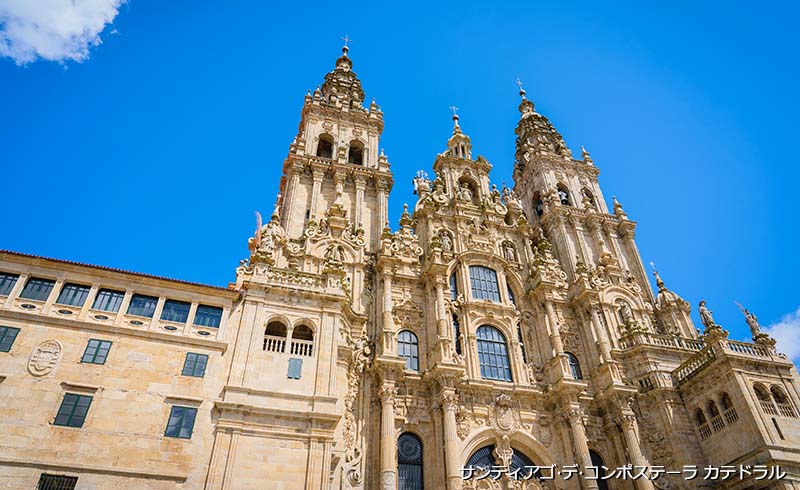 | 午後 | ≫≫≫サンティアゴ・デ・コンポステーラへ ▼所要時間:約1時間/61km 到着後、巡礼者が目的地サンティアゴ・コンポステーラのカテドラルを初めて目にした歓喜の丘(下車)を訪れます。 その後、サンティアゴ·デ·コンポステーラ市内観光(約2時間30分) 800kmにおよぶキリスト教の巡礼道の終着点であるサンティアゴ·デ·コンポステーラにて、カテドラル(入場)や街並みを望むアラメダ公園(下車)にご案内します。 |