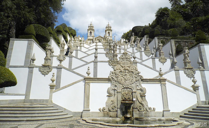 | 08:00 | ≫≫≫ブラガへ ▼所要時間:約2時間30分/186km 到着後、ブラガ観光(約2時間) ブラガの街ではカテドラル(下車)をご覧いただき、ブラガの中心部から少し離れた山の上にある聖地、ボン・ジェズス教会(外観)へ世界で一番古いケーブルカーに乗って訪れます。山の頂上にある教会からはブラガの美しい風景を一望できます。 |