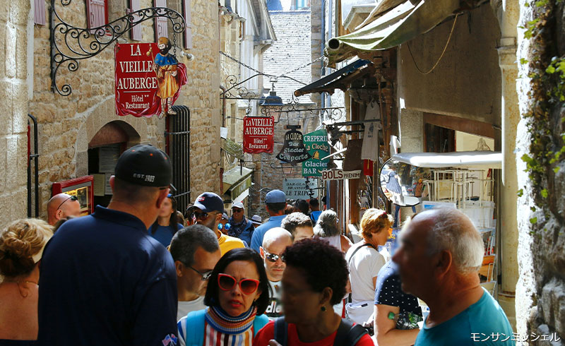 | 08:00 | ≫≫≫モンサンミッシェルへ ▼所要時間:約1時間45分/122km 到着後、モンサンミッシェル自由行動(約3時間/駐車場からの移動含む) 車の乗り入れが制限されているため、駐車場からシャトルバスでモンサンミッシェルへ向かいます。 海に浮かぶ修道院が特徴のフランスの世界遺産、モンサンミッシェル。 島全体が一体となった荘厳な修道院や、石畳の街並みをお楽しみください。 潮の満ち引きによる劇的な風景変化も見どころで、神秘的な雰囲気が魅力です。 |