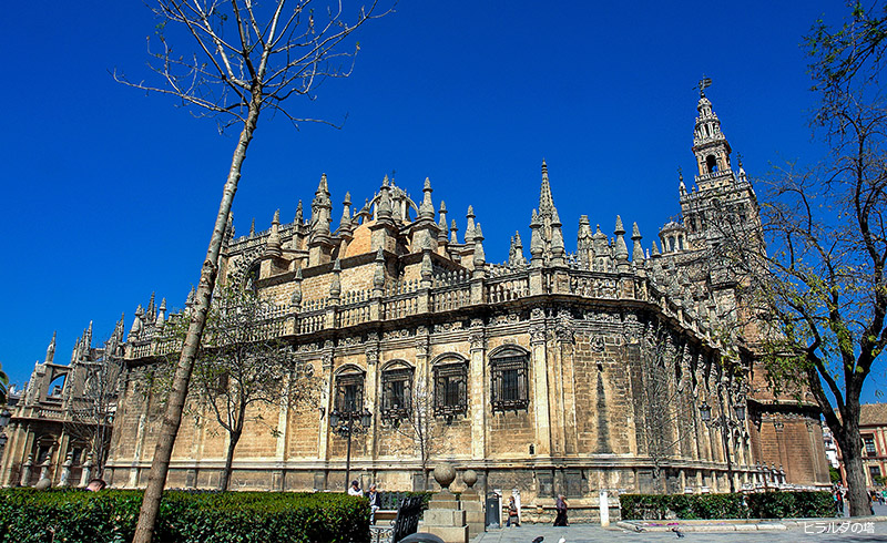 | 08:30-09:00 | セビリア市内観光(約4時間) 8世紀より数百年にわたりイスラム勢力の影響下にあったセビリアでは世界最大のゴシック様式のカテドラル(ヒラルダの塔含む)(入場)、スペイン広場、グアダルキビル川の河畔、黄金の塔、サンタクルス地区(いずれも下車)を訪れます。 |