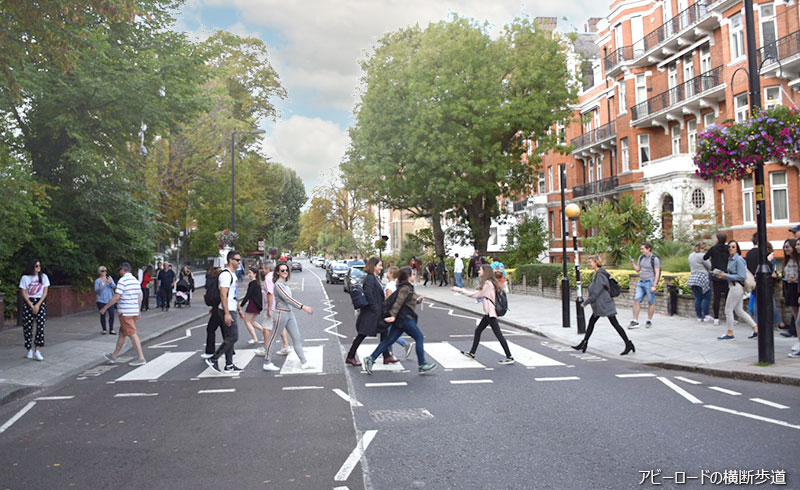アビーロードの横断歩道を渡る