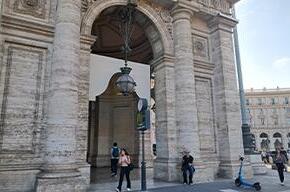 【ローマ】(4月から) レプブリカ広場に面する湾曲した2つの建物のテルミニ駅側の角