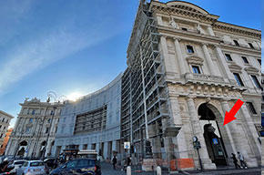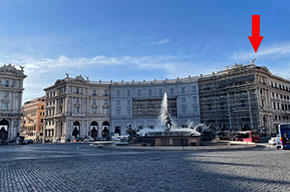 【ローマ】(3月まで) レプブリカ広場に面する湾曲した2つの建物のテルミニ駅から遠い側の角