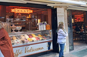 なだらかな階段の角にカフェ・ヴァティカーノ(Caffe` Vaticano)があります。