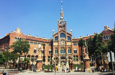 【バルセロナ】サン・パウ・モデルニズム区域(Reciente Modernista de Sant Pau) / サンパウ病院正面門の前