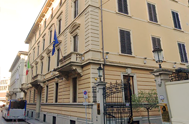 【ローマ】(4月から) レプブリカ広場に面する湾曲した2つの建物のテルミニ駅側の角