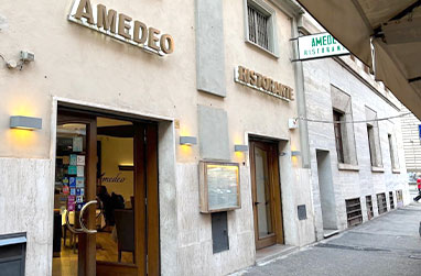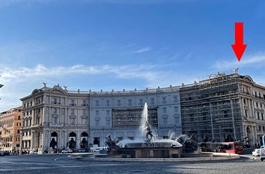 【ローマ】(3月まで) レプブリカ広場に面する湾曲した2つの建物のテルミニ駅から遠い側の角