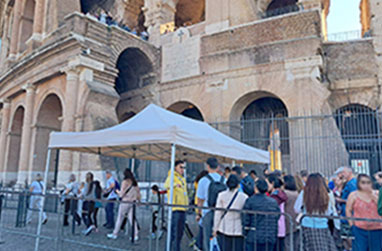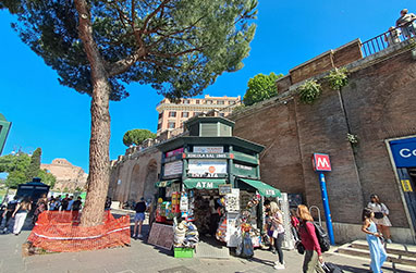 【ローマ】地下鉄B線コロッセオ駅改札出口を出た駅の外、右手にあるキオスク(松の木側)