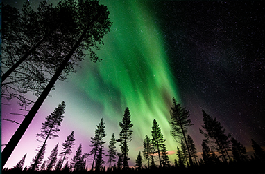 A フィンランド北部はオーロラベルト直下にあり、冬季の観測率は60〜80%と非常に高い地域です。 サーリセルカやロヴァニエミは特に条件が良いことで知られています。