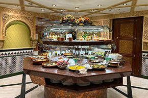 | 17:50/19:20 | 【ドリンク・ビュッフェディナー付プラン】 「タブラオ・フラメンコ・コルドベス/Tablao Flamenco」集合 ※レストランスタッフにクーポンをお渡しください。 レストラン係員の案内により店内ご着席後、ご希望のドリンクをお申し付けください。 ワンドリンク(ミネラルウォーター、グラスワイン、ビール、ソフトドリンクより選択) 約40種類以上の地中海料理・ビュッフェディナー |