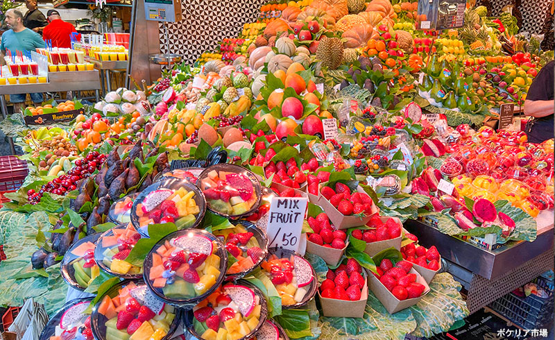 | 活気あるれるボケリア市場を散策 地中海ならではの食材も豊富に売られているバルセロナの台所こと「ボケリア市場」。 色とりどりの食材をみるだけでも楽しくなってしまう市場を散策します。 ガイドさんとともにショッピングもでき、スペインならではの食材をその場でたべることもできちゃう! |
