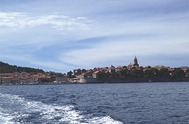 コルチュラ島へはボートで対岸の街から渡ります。ボートから見るオレンジの瓦屋根のコルチュラの町並みと、コバルトブルーに煌く美しいアドリア海は絶景です。