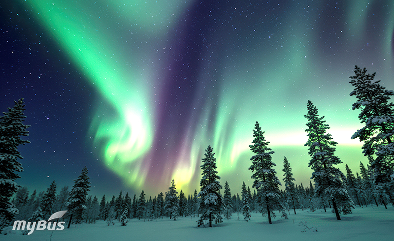 | 20:00 | バスでサーリセルカ市内から観測地点へ移動(約1時間) 光害の少ない郊外の観測スポットへバスで移動します。日本語係員が当日の気象状況をふまえて最適な観測ポイントをご案内します。(約1時間) |