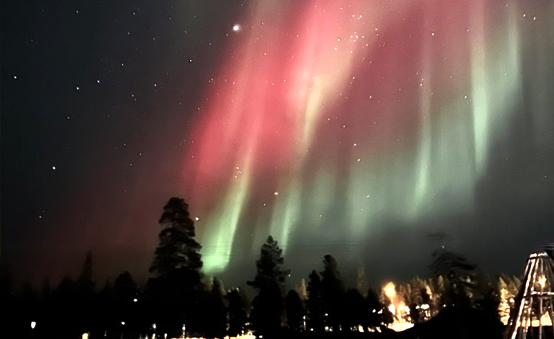 | 21:00 頃 | オーロラ観測(約1時間〜)天候条件が整えば、静寂のラップランドの夜空に揺らめく幻想的なオーロラを観測できます。 ※コタ内は暖かいですが、オーロラ観測は屋外で行います。十分な防寒対策でご参加ください。屋外で長時間の観測をご希望の方は、防寒具レンタルもご検討ください。 |