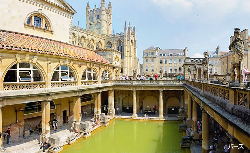 バース着 滞在約70分(4月~:約80分)ローマ浴場入場付きプラン ローマ浴場博物館見学 ローマ時代に発展した温泉地バースの浴場跡を見学します。 バース市街地散策 ※世界遺産(バース市街地)(公衆トイレあり) ローマ時代に発展した温泉地バースは街全体が世界遺産。ぜひ街歩きをお楽しみください。 バース出発 |