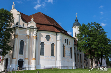 | 09:00~09:30 | 【世界遺産】 ヴィース教会入場見学(滞在約1時間/)広大の土地の中にひっそりと佇むヴィース教会ですが、扉を開けると、『うぁ』と声が漏れてしまうような、内観が目に飛び込んできます。長閑な外とは対照的な、豪華絢爛な美しさをお楽しみください。 |