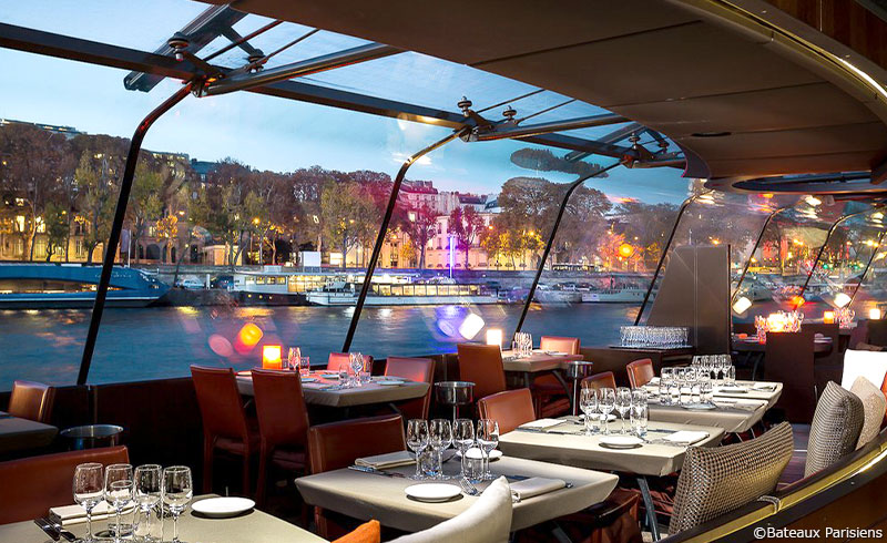 パリ観光のハイライト、セーヌ川ディナークルーズで、夜景と美食の贅沢な時間をお過ごしください。