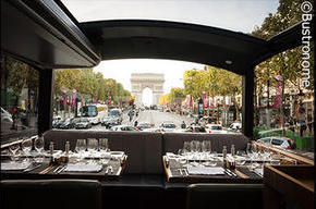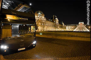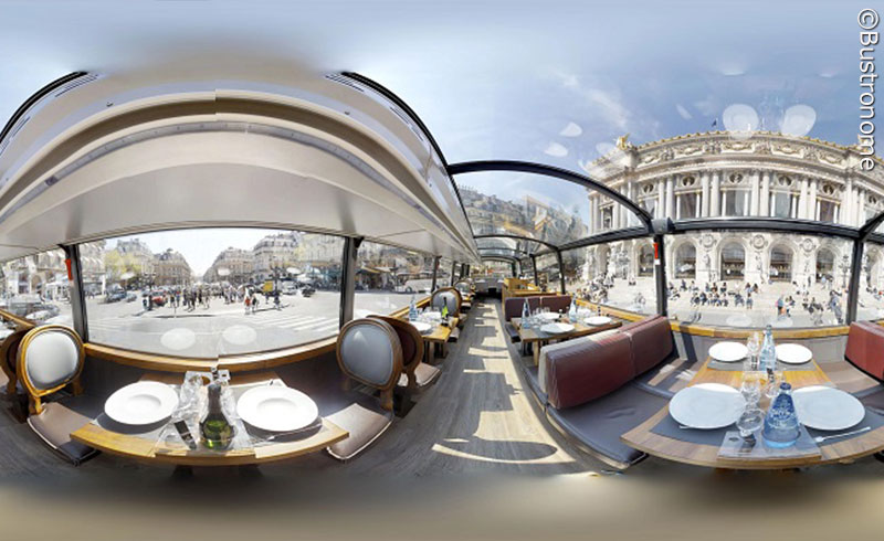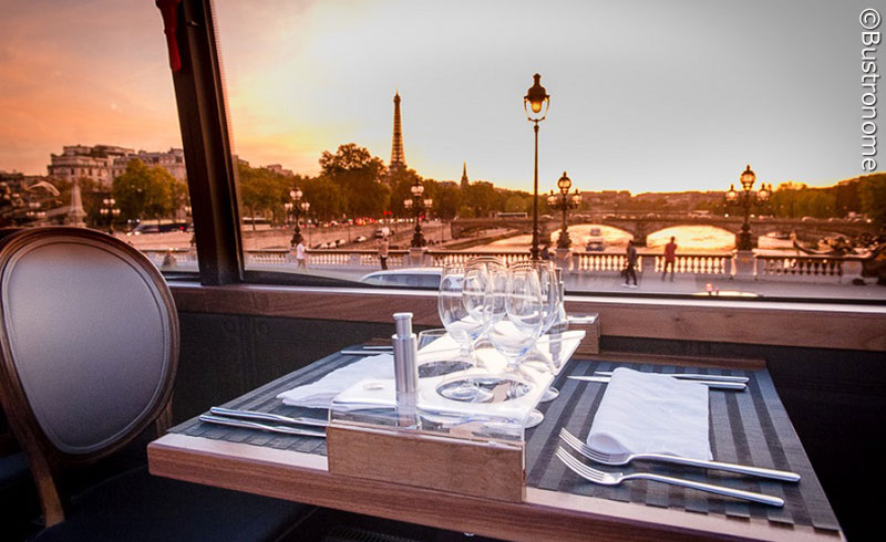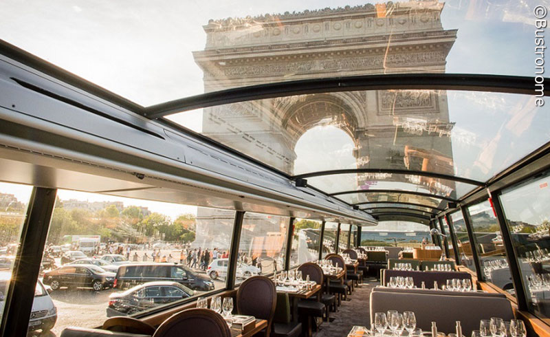 天井も側面もガラス張りの二階建てバスでパリの観光名所を巡りながら、フランス料理のコースメニューをお楽しみ頂けます。