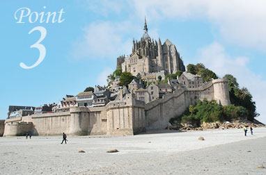 | 12:45頃 | 📍モンサンミッシェル着 (滞在時間:約3時間45分) *全プラン修道院入場券付き! (*移動のみ・フリープラン/MBP9Eを除く) 《往復移動のみ・フリープラン》 モンサンミッシェル到着後自由散策 ※各自昼食をおとりください。 対象ツアー:MBP9E 《自由見学プラン》 モンサンミッシェル到着後自由散策 ※各自昼食をおとりください。 対象ツアー:MBP9S 《ガイド付きプラン》 モンサンミッシェル到着後、各自で昼食をおとりください。 昼食後、再集合し、ガイドと共にモンサンミッシェル島内および修道院見学+自由散策 対象ツアー:MBP9DV |