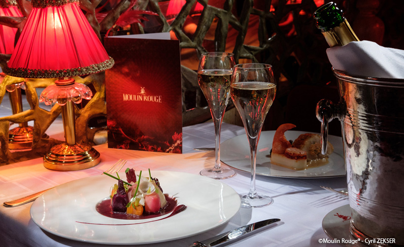 1889年創業の世界でもっとも有名なキャバレーの一つ「ムーランルージュ」で、ディナーとショーを楽しむプランです。