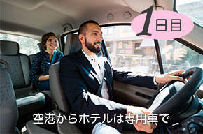 Point① 専用車にて日本語係員同行による空港⇔ホテルの往復送迎付き