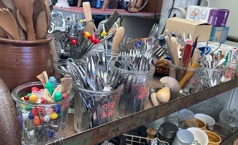 6ヘクタールもの広大な敷地には、多い時で約600店舗が並びます。家庭用品や家具、古着、アクセサリー、現代アートまで、多種多様なアイテムが勢ぞろい。