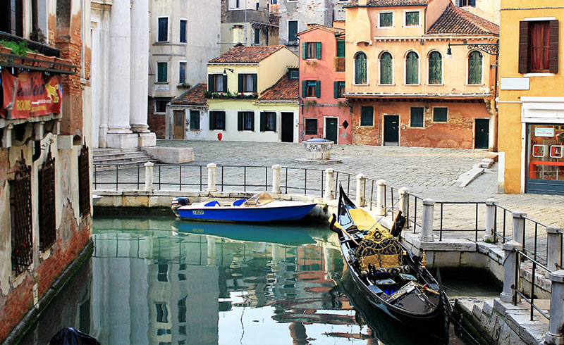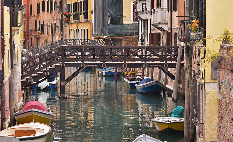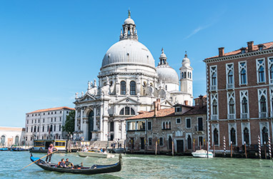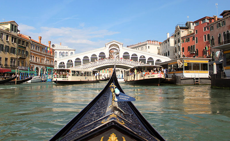 一度は乗ってみたい憧れのゴンドラ遊覧付き。運河をゆったりと進むゴンドラに揺られて、ベネチアの美しい風景をしっかり満喫