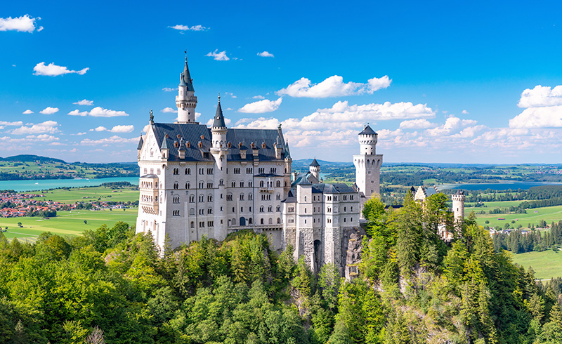 ルートヴィッヒ2世が築いたドイツを象徴する城を訪れます。内部観光が可能で、予約状況によっては代替でホーエンシュバンガウ城を訪れる柔軟な対応も。