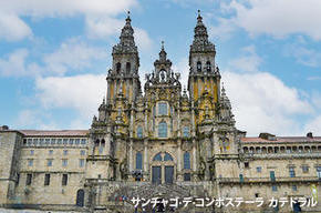 | 午後 | ≫≫≫サンティアゴ・デ・コンポステーラへ ▼所要時間:約1時間/61km 到着後、巡礼者が目的地サンティアゴ・コンポステーラのカテドラルを初めて目にした歓喜の丘(下車)を訪れます。 その後、サンティアゴ·デ·コンポステーラ市内観光(約2時間30分) 800kmにおよぶキリスト教の巡礼道の終着点であるサンティアゴ·デ·コンポステーラにて、カテドラル(入場)や街並みを望むアラメダ公園(下車)にご案内します。 |