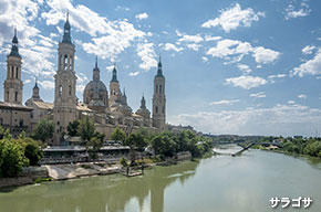 | 08:30 | ≫≫≫サラゴサへ ▼所要時間:約2時間30分/181km 着後、サラゴサ自由行動(約3時間/昼食は各自) エブロ川と「聖母ピラール教会」の景観や旧市街の散策をお楽しみください |