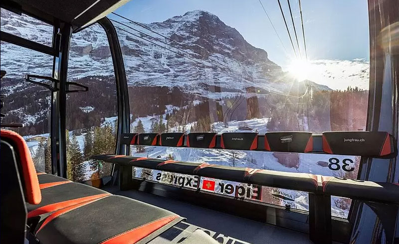 2020年開業のアイガー・エクスプレスで約15分の空中移動。従来ルートより短時間でアクセス可能。