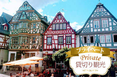 お客様のお好きな街へガイドが列車を使ってご案内します。フランクフルト近郊のヘッセン州の街限定です。木組みの街並みがかわいいミヒェルシュタット(Michelstadt)、ゲーテも住んだ街ヴェツェラー(Wetzler)、バームクーヘンのカフェがあるリンブルク(Limburg)、ライン河沿いのリューデスハイム(Ruedesheim)、マインツ(Mainz)、エルトヴィル(Eltville)、グリム兄弟ゆかりのマーブルク(Marburg)、ゲーテ街道のフルダ(Fulda)、ヘッセン州の州都ヴィースバーデン(Wiesbaden)、木組みの家街道の宝石イトシュタイン(Idstein)など、思い思いの観光をお楽しみください。
